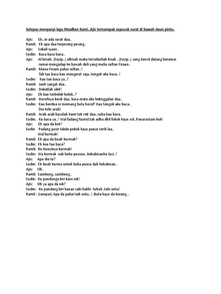 Maafkan kami Maafkan kami 2x. Maafkan kami si Bujang Lapuk. Nak merokok ngutanglah dolok.